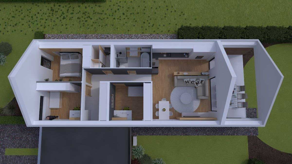 Dom je navrhnutý s dôrazom na funkčnosť priestoru: