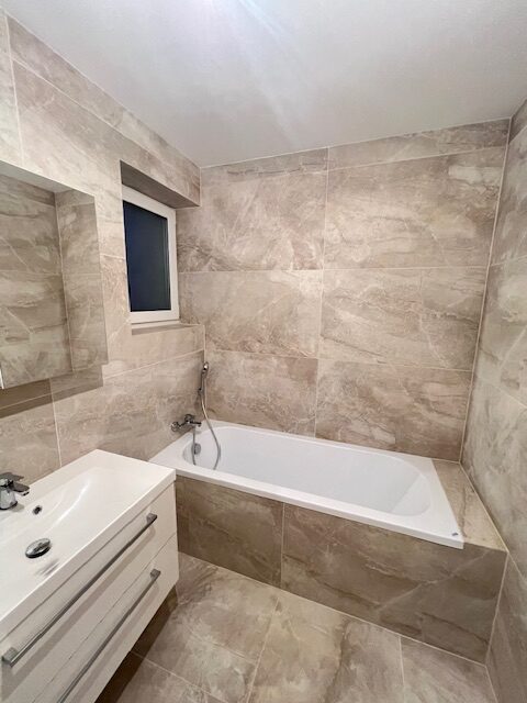 • Kúpeľňa s vaňou, sprchovým kútom, WC a umývadlom