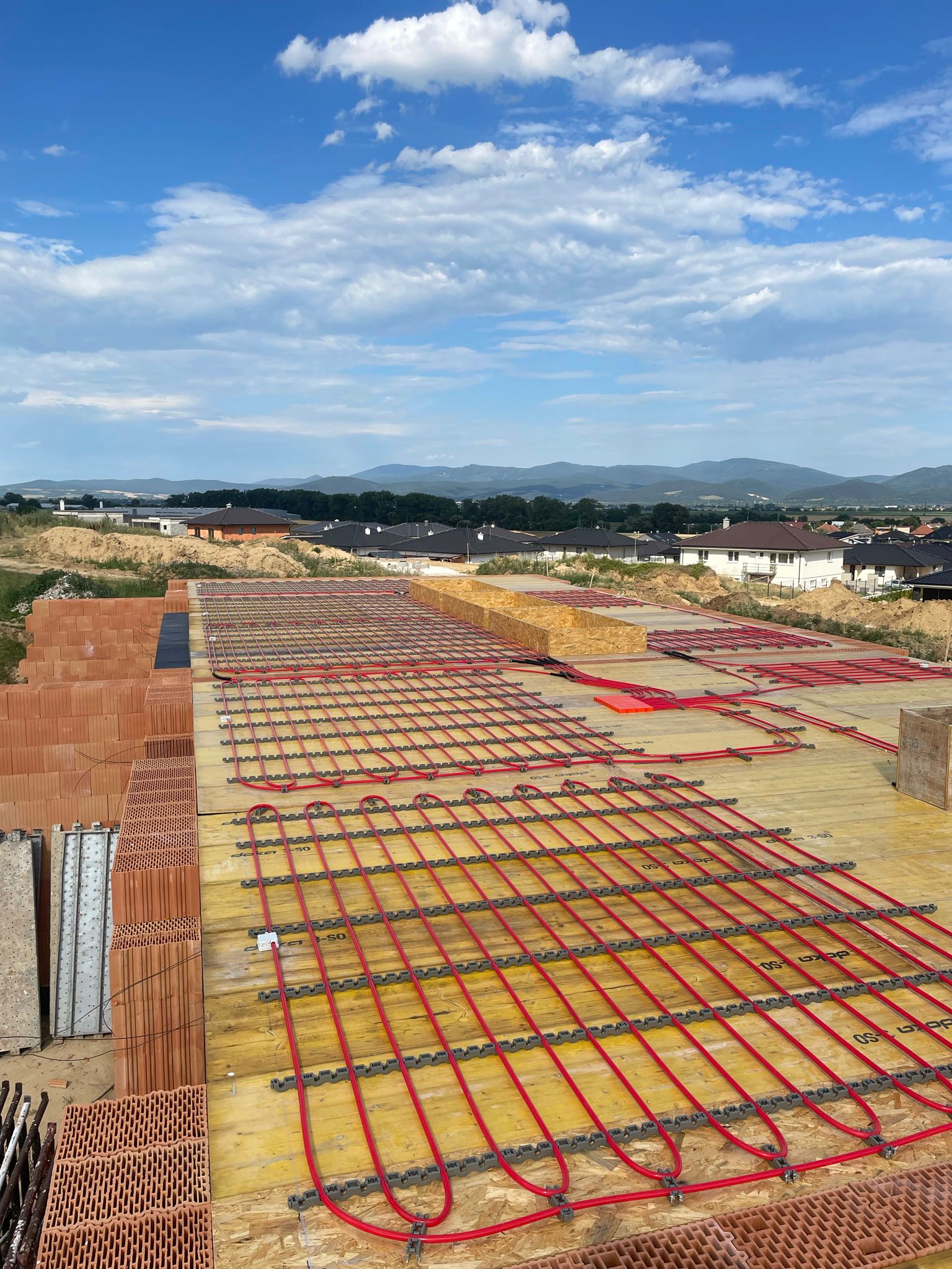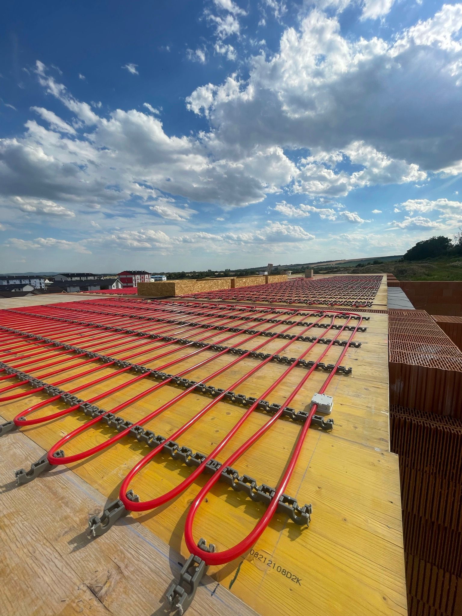 V rodinnom dome sme zrealizovali vodné stropné chladenie, ktoré prináša vysoký komfort bez prievanu a hluku. Chladiace okruhy sú integrované v strope a napojené na tepelné čerpadlo – s možnosťou ekonomického free-coolingu.